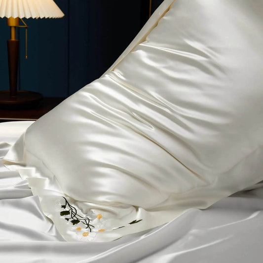 Embroidered Pillowcase - 100% Double-sided Pure Mulberry Silk Oeko-Tex Certified